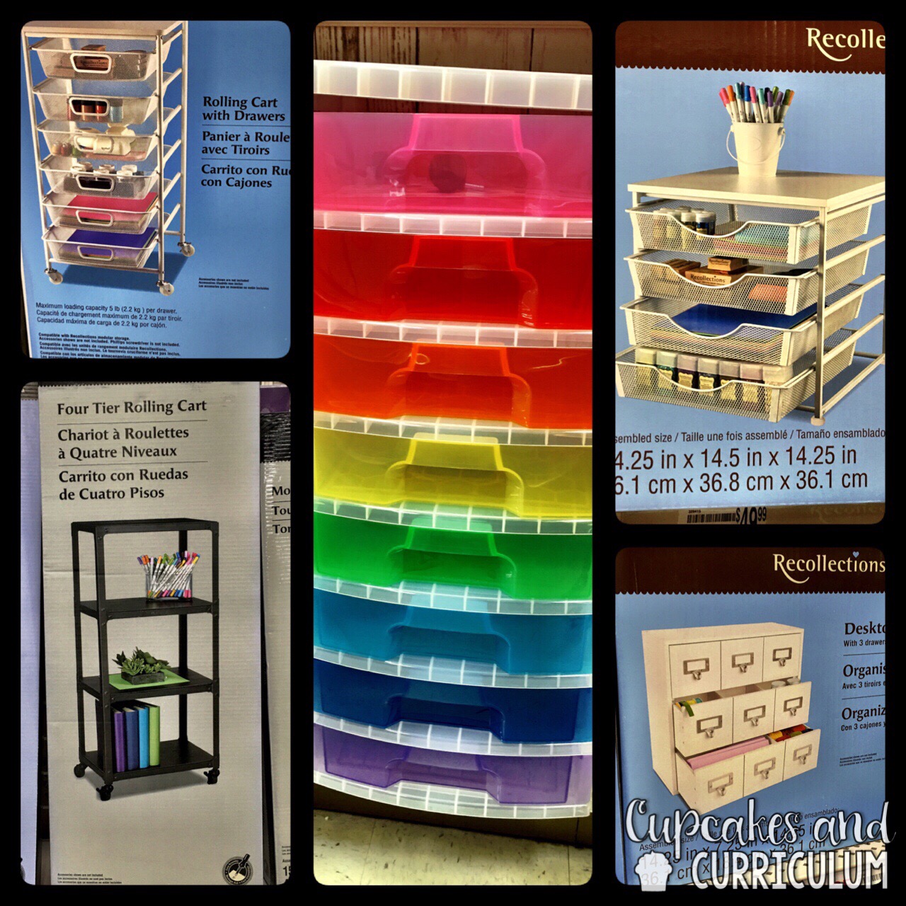 That six drawer silver cart? Perfect for a Monday-Friday drawer plus a “miscellaneous” drawer for your weekly copies. The four drawer desktop drawers? Perfect for your “grade,” “copy,” “file,” and “laminate” papers. That nine drawer one on the bottom right? Perfect for all of your desk items if you are like me and got rid of the bulky teacher desk. Jeez… all of these are just perfection.
